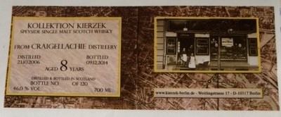Craigellachie 2006-2014, 8 Jahre, 46% alc. Abfüller: Kierzek. Ausbau: Fass No. 900641